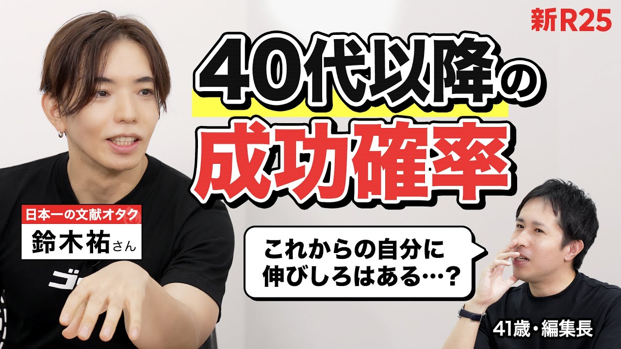 文献オタク・鈴木祐さんに相談しています。鈴木さんは、「年齢に関係なく、トライさえ続けられれば、人はいつまでも成長できる」という事実を教えてくれました。また、成功の定義は人それぞれであり、自分の価値観を深掘りすることが大切だとアドバイスしています。最後に、鈴木さんは、「40代は人生の折り返し地点であり、ここからの人生をどう生きるかを決める重要な時期である」と述べています。