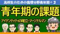 ビデオでは、アニメシリーズ「サザエさん」と「ちびまる子ちゃん」のキャラクターを使用して、各段階の例を示しています。たとえば、サザエさんは青年期にあり、親密対孤立の危機に直面しています。彼女は、夫のマスオとの関係を深め、友人とのつながりを維持しようとしています。
