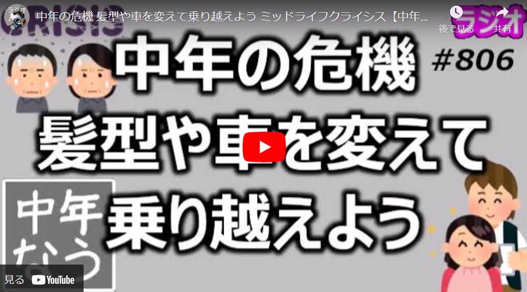 中年男性は、仕事や家庭での責任が増える一方で、自分の将来や生き方に疑問を抱くようになります。自信ややる気の低下などを挙げこのような危機を乗り越えるためには、何か新しいことに挑戦したり、自分の外見を変えたりすることが効果的だと話者は主張します。