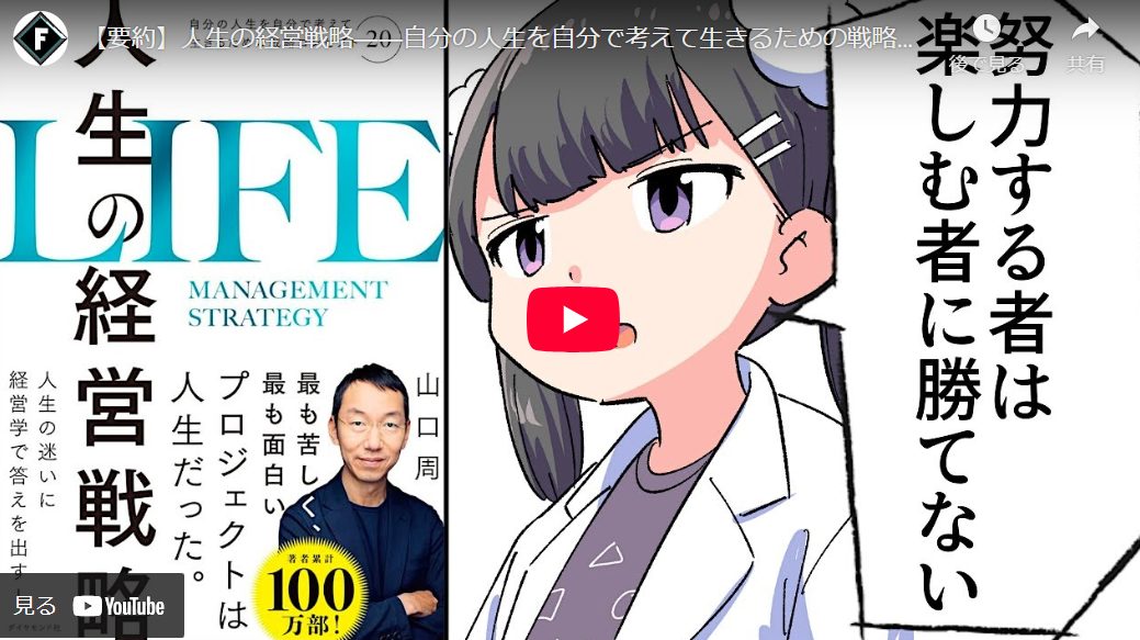 人生の経営戦略 自分の人生を自分で考えて生きるための戦略コンセプト20 人生は「いつも幸せ」な状態を目指すゲームこの動画は、著作家・経営コンサルタントの山口周氏の著書『人生の経営戦略』に基づき、予測困難な現代で「思い通りにならない人生をどうにかしてうまくいかせる」ための戦略を解説しています。人生の最終目標:”いつも”幸せな状態人生の目標は「いつか」ではなく「いつも幸せな状態(ウェルビーイング)」を築き、いつ死んでも「自分らしい良い人生だった」と思えるように生きること。人はいつ死ぬかわからないため。老後や将来のために「今」を我慢しすぎると、いざその時がきても健康や体力などの問題でやりたいことができない可能性がある。まず、山口周氏は人生における究極の目標設定が重要だと説かれています。会社経営やマラソンと同様に、人生も明確な目標がなければ進むべき方向を見失ってしまいます。本書で提唱される目標は、「いつか幸せになる」のではなく、「”いつも”幸せな状態(ウェルビーイング)を築き上げること」です。そして、いつ人生の終わりを迎えても「自分らしい、良い人生だった」と心から思える生き方を目指すべきだと強...
