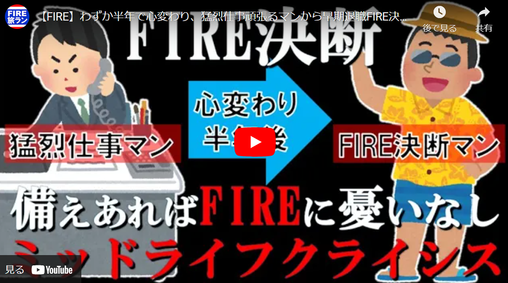 40代 【FIRE】わずか半年で心変わり、猛烈仕事頑張るマンから早期退職FIRE決断マンへと変貌、ミッドライフクライシスの大きな心境変化に対しても備えあれば憂いなし